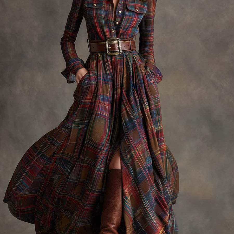 Unity | Karirana maxi haljina dugih rukava