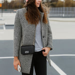 Elegantna Caterinella™ midi jakna je vaš neizostavni saputnik za hladne jesenje dane i zimske večeri. Sa svojim klasičnim uzorkom ptičjeg zuba i bezvremenskom siluetom, lako spaja stil, udobnost i toplinu – savršena za svaku priliku, bilo u svakodnevnom životu ili posebnim momentima.