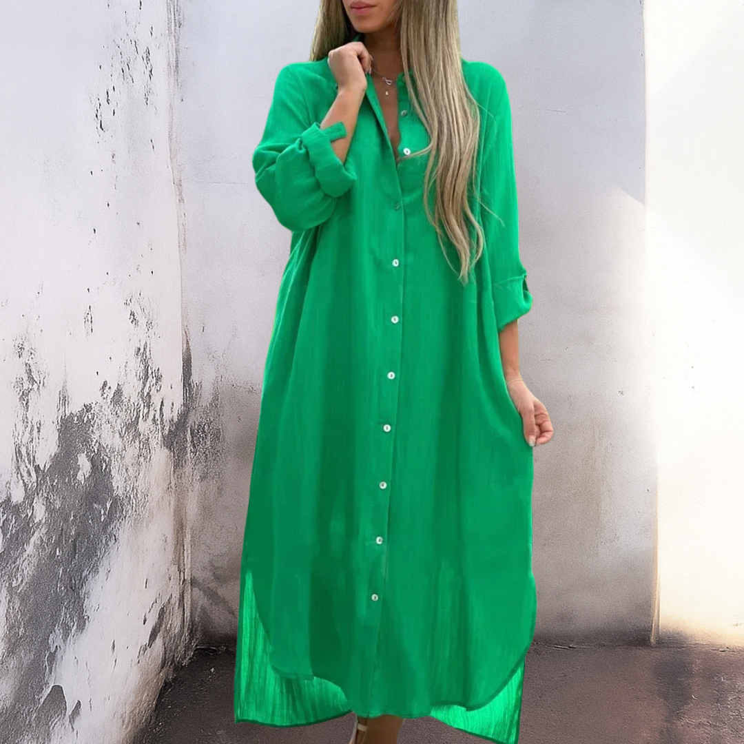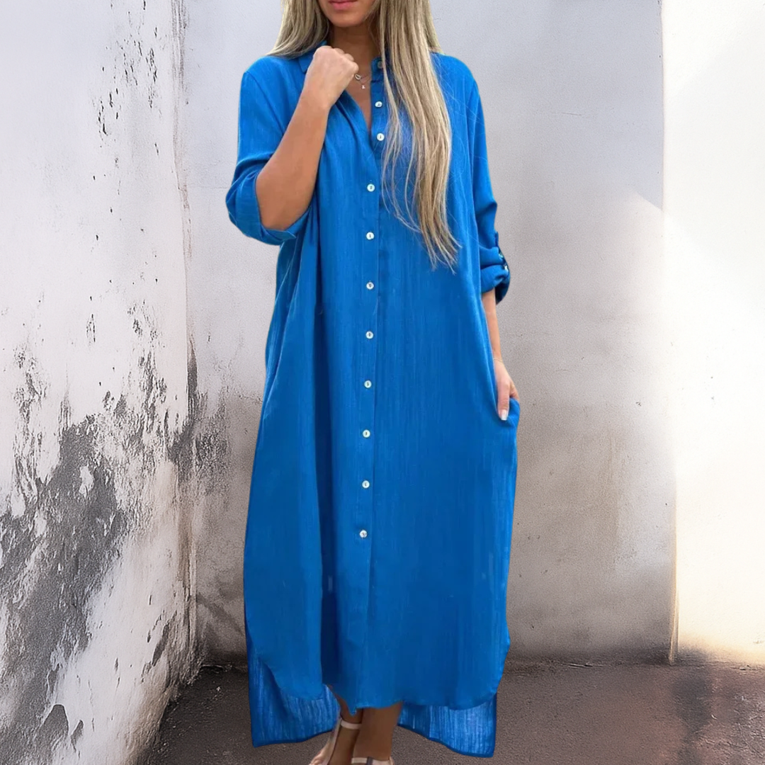 Savršena za letnje izlete, opuštajuće gradske ture ili elegantan ručak s prijateljima – Marie ™ košulja haljina odmah vas uvodi u Ibiza raspoloženje.